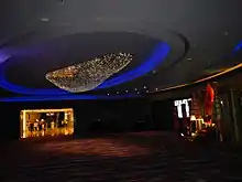 The theater was inaugurated in November 2010 a year after the Newport Mall opened on August 28, 2009.[4] It was designed by Joseph Sy & Associates of Hong Kong and won Perspective Awards-Certificate of Excellence and the Asia Pacific Interior Design Silver Award in 2011, as well as Best Theatrical Venue from BroadwayWorld Philippines in 2012.[2][5] It features an elegant vestibule adorned by crystal chandeliers which was designed by Filipino sculptor Impy Pilapil.[2]
