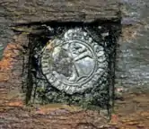 Dendrochronology reveal that most of the timbers used to build the ship originate from the Basque Country of northern Spain dating from c.1449.[5] The discovery in the spring of 2006 of a French "petit blanc" (small white) silver coin inserted into a cut out in the stempost/keel join was a major step forward. Placed, perhaps, as a token of good fortune at the start of the ship's construction, this coin was minted in Crémieu in the Dauphinois region of France between May and July 1447. Tree trunks found under the hull and forming the support for the ship when under repair, have a dendrochronology date of 1468 – 1469.[6] This would give the ship a maximum working life span of 20 years.