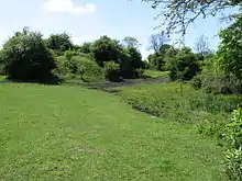 Most of Newton lies on the Pennine Middle Coal Measures Formation bedrock.[31] This is a mix of mudstone, siltstone, sandstone and coal seams. The sandstone was used as a building material, especially during the pre-industrial era.[7] The presence of coal accounts for the growth of the population in Newton during the industrial era. The mudstone enabled many of the local collieries (including Blackwell) to manufacture their own bricks.[32] To the east, Newton is overlooked by two Nottinghamshire hills, Whiteborough Hill and Strawberry Bank, that are capped by dolomitic limestone of the Cadeby Formation.[31]