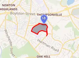 By the late 1950s, Newton's sole public high school, Newton High, grew to 3,000 students. Newton built a new school, Newton South, in the Oak Hill neighborhood in 1960.[3] The school is organized into four student houses—Cutler, Goldrick, Goodwin, and Wheeler—each with a student commons.[3]