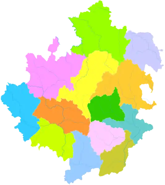 The region is composed of one county-level city and twelve counties: