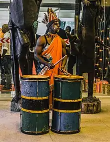 All of the drums can be played with sticks or hands, except the Nankasa which is primarily played with two sticks.
