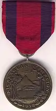 The Nicaraguan Campaign Medal is a campaign medal of the United States Navy which was authorized by Presidential Order of Woodrow Wilson on September 22, 1913. A later medal, the Second Nicaraguan Campaign Medal was authorized by an act of the United States Congress on November 8, 1929. The two medals were considered two separate awards, with the original medal being commonly referred to as the First Nicaraguan Campaign Medal.