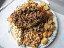 Nick Tahou Hots is a restaurant in Rochester, New York best known for a dish called the Garbage Plate.[1] The restaurant was founded in 1918 by Alex Tahou, the grandfather of the 21st-century owner (also named Alex Tahou), and named for Nick Tahou, the founder's son, who operated the establishment until his death in 1997. While there are other Upstate New York variants, Nick Tahou's is the originator of the trademarked Garbage Plate.[2]