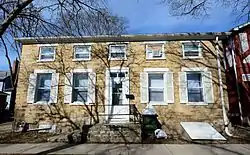The Nicking House is a historic building located in Iowa City, Iowa, United States. Henry C. Nicking, who was a barber, had this house built in 1854. It is one of the oldest houses in the city, and one of a very few that was constructed using sandstone.[2] The general architectural style is a stripped-down version of the Greek Revival style, but a rear addition gives it a saltbox appearance. It features a symmetrical facade, side gable roof, limestone lintels and window sills, and cornice returns on the front. The house was listed on the National Register of Historic Places in 1975.[1]