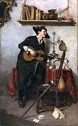 From 1872 to 1878, he studied in Rome with Marià Fortuny and at the Accademia Chigi, where he was influenced by the Macchiaioli. He then went to Paris and worked with Jean-Louis-Ernest Meissonier until 1880.[1] By this time, he was already very popular with art dealers. His works were distributed throughout Europe and North America by a German firm. In 1880, he participated in the Salon, presenting his historical genre work "Laboremus" at a time when most of the exhibitors were impressionists.