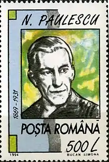 He was an associate of ultranationalist, Professor A. C. Cuza, and wrote extensively for the latter's newspaper, Apărarea Națională ('The National Defense'). Paulescu influenced Cuza to incorporate religion into his doctrine. He also heavily influenced the leader of the fascist Iron Guard organisation, Corneliu Zelea Codreanu. Codreanu extensively quoted Paulescu, and acknowledged the powerful impact that Paulescu's ideas had on his own development.[10] Paulescu was the first to link together Romanian antisemitism, Christianity and ultranationalism.[11] In 1922, Paulescu co-founded the "National Christian Union" (which evolved into the LANC in 1923), together with A. C. Cuza. That same year, the NCU adopted the swastika as its official symbol.[12]