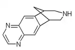 | Varenicline tartrate | Champix, Chantix | 7,8,9,10-tetrahydro-6,10-methano-6H-pyrazino[2,3-h][3]benzazepine[25] | Film coated tablet | Partial agonist of the nicotinic acetylcholine receptor, subtype α4β2[26] | Treatment of tobacco dependence[26] | ![]() |