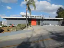 The Nielsen Pool House is Riverside City Landmark #134, the former residence of noted architectural engineer Svend Nielsen. The home was designed and engineered by Nielsen, who began construction in 1964. Nielsen and his family resided in the home from its completion in 1966 until 1988.[1] Nielsen and his wife were immigrants from Denmark and the home is quintessentially representative of Mid-Century Modern architecture.[2] As a representation of Mid-Century Modern Architecture, the home features ribbon windows, soffit lighting, built in units, a flat roof and multiple sputnik light fixtures.