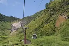 The Nikkō Shiranesan Ropeway (日光白根山ロープウェイ, Nikkō Shiranesan Rōpuwei) is Japanese aerial lift line in Katashina, Gunma, operated by Nippon Paper Development. Opened in 1950, the line climbs Mount Nikkō-Shirane, the tallest mountain in Kantō region. The line is mostly inside Malnuma Kōgen Ski Resort (丸沼高原スキー場). As such, it primary transports skiers, but it also opens in other seasons for tourists.