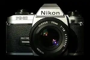 The Nikon FG is an interchangeable lens, 35 mm film, single-lens reflex (SLR) camera. It was manufactured by Nippon Kogaku K. K. (Nikon Corporation since 1988) in Japan from 1982[3] to 1986.