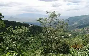 Ninh Thuận's topography is typical for the South Central Coast in that high mountains are located not only near western border to the Central Highlands, but also near the coast, the highest of which is Chúa mountain (Vietnamese: Núi Chúa) at 1,040 metres (3,410 ft) in the north east of the province.[2] Several other peaks with heights up to 643 metres (2,110 ft), including Đá Bạc mountain (Vietnamese: Núi Đá Bạc) in the south, are located along the coast.[2] The highest mountains are located at the borders to Khánh Hòa province and Lâm Đồng province, with three mountains of over 1,600 metres (5,200 ft) and the highest at 1,652 metres (5,420 ft), Sương Mù mountain (Vietnamese: Núi Sương Mù).[2] Only a small part of the province around Phan Rang has elevations of under 50 metres (160 ft).[3] The province's major river is the Dinh River, which flows through the main lowland of the province as well as Phan Rang. It has several tributaries in the province and is connected to Don Duong Lake in Lâm Đồng province.[2]