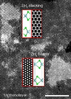 Niobium diselenide exists in several forms, including 1H, 2H, 4H and 3R, where H stands for hexagonal and R for rhombohedral, and the number 1, 2, etc., refers to the number of Se-Nb-Se layers in a unit cell. The Se-Nb-Se layers are bonded together with relatively weak van der Waals forces, and can be exfoliated into 1H monolayers. They can be offset in a variety of ways to make different crystal structures, the most stable being 2H.[4]