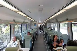 - A-car: one aerodynamic gangwayless end with full-width cab, one flat non-cab end with gangway, equipped with one ADA-compliant bathroom