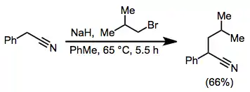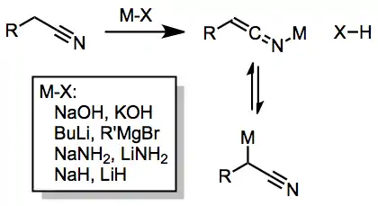Alternative methods to produce nitrile anions include conjugate addition to α,β-unsaturated nitriles,[3] reduction,[4] and transmetallation.[5]