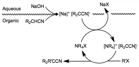 - Makosza, M.; Jonczyk, A. (1976). "Phase-Transfer Alkylation of Nitriles: 2-Phenylbutyronitrile". Organic Syntheses. 55: 91. doi:10.15227/orgsyn.055.0091.