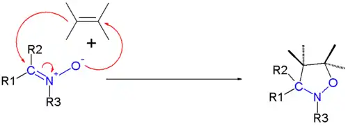 As 1,3-dipoles, nitrones are useful in 1,3-dipolar cycloadditions.[2] Upon reaction of a nitrone with an alkene dipolarophile, an isoxazolidine is formed:
