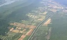 ![]() Aerial photo of Nittany Valley looking east. from Milesburg. Bald Eagle Mountain is on the left and Mount Nittany is at the upper right. | |
