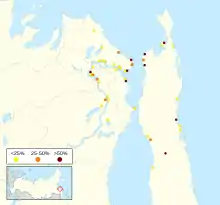 ![]() Settlements with Nivkh populations in the Russian Census of 2002 | |