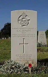CWGC headstone of a member of 534 Squadron who died in the first month of its operation. WO2 Douglas Jardine was on secondment from the Royal Canadian Air Force and is buried at Chichester in England