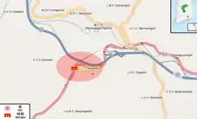 On July 25, as North Korean forces seized the town of Yongdong, 7 miles (11 km) west of No Gun Ri, U.S. troops were evacuating nearby villages, including hundreds of residents of Chu Gok Ri and Im Ke Ri. These villagers were joined by others as they walked down the main road south, and the estimated 600 refugees spent the night by a riverbank near Ha Ga Ri village, 3.5 miles (5.5 km) west of No Gun Ri. Seven refugees were killed by U.S. soldiers when they strayed from the group during the night. In the morning of July 26, the villagers found that the escorting soldiers had left. They continued down the road, were stopped by American troops at a roadblock near No Gun Ri, and were ordered onto the parallel railroad tracks, where U.S. soldiers searched them and their belongings, confiscating knives and other items. The refugees were resting, spread out along the railroad embankment around midday, when military aircraft strafed and bombed them.[12]:69–72 Recalling the air strike, Yang Hae-chan, a 10-year-old boy in 1950, said the attacking planes returned repeatedly, and "chaos broke out among the refugees. We ran around wildly trying to get away."[13] He and another survivor said that soldiers reappeared and began shooting the wounded on the tracks.[14][15] Survivors first sought shelter in a small culvert beneath the tracks, but soldiers and U.S. ground fire drove them from there into a double tunnel beneath a concrete railroad bridge. Inside the bridge underpasses, each 80 feet (24 m) long, 22 feet (6.5 m) wide and 40 feet (12 m) high, they came under heavy machine gun and rifle fire from 7th Cavalry troops from both sides of the bridge.[12]:71 "The American soldiers played with our lives like boys playing with flies," said Chun Choon-ja, a 12-year-old girl at the time.[16] "Children were screaming in fear and adults were praying for their lives, and the whole time they never stopped shooting," said survivor Park Sun-yong, whose 4-year-old son and 2-year-old daughter were killed, while she was badly wounded.[13]