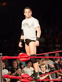 The day after the big development, Evans tried to make peace between Aries and Strong, who both refused to listen to him, instead telling him to choose a side in the rivalry. Aries eventually accepted Evans' decision not to choose a side and announced that he was forming a new stable to go to war with the N.R.C.[8] On February 24, Matt Cross agreed to join Aries' new stable, which led to the first official match in the rivalry, where the two defeated Strong and Richards.[9] Over the next weeks, the No Remorse Corps added a third member, Rocky Romero, who had just returned to ROH from an extended stay in Japan, while Aries' stable, now named "The Resilience", added Erick Stevens, Strong's former protégé.[4] The two stables feuded for the rest of 2007 with N.R.C. dominating their rivals, partly due to Aries spending several months away from ROH due to a contract dispute with the Total Nonstop Action Wrestling (TNA) promotion.[4] While Aries was away, Cross and Stevens were aided by Delirious and Bryan Danielson, the latter of whom had turned down an earlier offer to join the N.R.C.[10][11] Eventually, Jack Evans also joined the feud with his own stable, the Vulture Squad, but Strong and the No Remorse Corps continued dominating the rivalry between the former Generation Next members.[6]