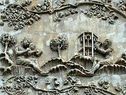 A Tanna read the words, "with lower, second, and third stories shall you make it," in Genesis 6:16 to teach that the bottom story was for the dung, the middle for the animals, and the top for Noah's family.[89] A Midrash, however, reported that some said that the words, "with lower, second, and third stories shall you make it," meant that the bottom story was for waste, the second for Noah's family and the clean animals, and the third for the unclean animals. And the Midrash reported that others said that the bottom story was for the unclean animals, the second for Noah's family and the clean animals, and the top for the garbage. The Midrash taught that Noah managed to move the waste by arranging a kind of trapdoor through which he shoveled it sideways.[93]