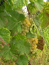The Noah grape is a cultivar derived from the grape species Vitis labrusca or 'fox grape' which is used for table, juice and wine production. Noah has berries of a light green/yellow and has medium-sized, cylindrical-conical, well formed fruit clusters with thick bloom similar to those of Elvira.[1]