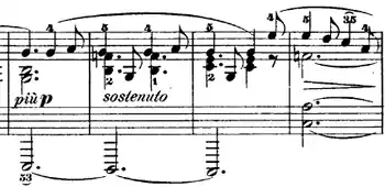 4 meter. In measure 41, the key changes to E♭ major and returns to G minor in measure 67. The piece is a total of 91 measures long, ending with a Picardy third, and is in ternary form.[2] One of Chopin's students once claimed that Chopin himself forgot to mark the increase in tempo for the chorale, which led to the section being played too slowly.[7]