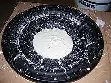 An inexpensive, non-toxic example of a non-Newtonian fluid is a suspension of starch (e.g., cornstarch) in water, sometimes called "oobleck", "ooze", or "magic mud" (1 part of water to 1.5–2 parts of corn starch).[8][9][10] The name "oobleck" is derived from the Dr. Seuss book Bartholomew and the Oobleck.[8]
