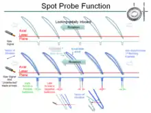 Non-intrusive stress measurement (system), or NSMS, is a method for determining dynamic blade stresses in rotating turbomachinery. NSMS is also known by the names "blade tip timing" (BTT),[1] "arrival time analysis" (ATA), "blade vibration monitoring" (BVM), Beruehrungslose Schaufel Schwingungsmessung (BSSM), and "blade health monitoring" (BHM). NSMS uses externally mounted sensors to determine the passing times of turbomachinery blades. The passing times after conversion to deflections, can be used to measure each blade's vibratory response characteristics such as amplitude/stress, phase, frequency and damping. Since every blade is measured, stage effects such as flutter, blade mistuning, and nodal diameter can also be characterized.[2] The measurement method has been used successfully in all stages of the gas turbine engine (fan, compressor, and turbine) and on other turbo-machinery equipment ranging from turbochargers to rocket pumps. The ability to apply the technology to a given situation is dependent upon a sensor type that can meet the environmental requirements.[3]