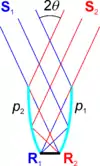 Figure Edge ray principle on the right illustrates this principle. A lens collects light from a source S1S2 and redirects it towards a receiver R1R2.