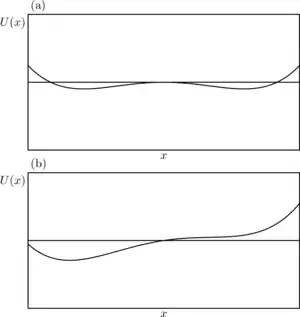 where is the force due to potential field. The drift continues until a steep enough region in the course of is met, which is able to stop the drift. This kind of behavior, as rigorous mathematical analysis shows, [10] results in modification of by adding a linear in term. This may change the qualitatively, by, e.g. changing the number of equilibrium points, see Fig. 8. The effect may be essential during high frequency electric field acting on biopolymers. [11]
