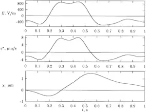 In the last expression, even if the applied field, has zero mean, the applied force may happen to have a constant component that can cause a directed drift. [12] As above, for this to happen, must have more than a single sinusoidal harmonic. This same effect for a liquid in a tube may serve in electroosmotic pump driven with zero mean electric field.[13]