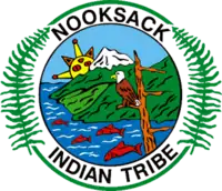 The Nooksack (/ˈnʊksæk/; Nooksack: Noxwsʼáʔaq) are a federally recognized Native American tribe near the Pacific Northwest Coast. They are a sovereign nation, located in the mainland northwest corner of Washington state in the United States along the Nooksack River near the small town of Deming (in western Whatcom County), and 12 miles south of the Canadian border.[1] As of 2008, they had more than 1,800 enrolled members.[2] Their terms for citizenship include descent from persons listed in a 1942 tribal census.