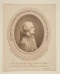 Norborne Berkeley, 4th Baron Botetourt (c. 1717 – 15 October 1770), was a British courtier, member of parliament, and royal governor of the colony of Virginia from 1768 until his death in 1770.