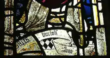 The great east window of the chapel originally held 14th century glass depicting a large scene with full-sized figures. By 1770 the glass was in very bad condition. At that time the rectors of parishes were personally responsible for the financing of repairs to their churches- so the rector of Norbury, the Rev. S. Mills, had the window bricked up with the glass remaining in situ. In 1830 the then rector, the Rev. Thomas Bingham,[21] was approached by a Roman Catholic family of Yorkshire with a view to purchasing the glass. Whether the glass was removed and sold, or stolen (as happened at Haddon Hall), or had disintegrated is not known, but it had disappeared by 1842 when the window was opened up again and filled with 15th century glass taken from the rest of the church windows.[22][23]