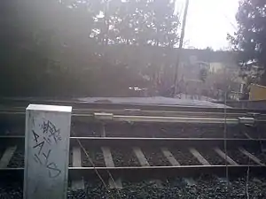 Nordberg was part of Holmenkolbanen's operating network until 1975, when the municipality of Oslo bought all the company's stock.[5] In the early 1990s, the stations on the Sognsvann Line were upgraded to metro standard, which involves a heightening and lengthening of the platforms, installation of third rail power supply and a new signaling system.[6] The third rail made it impossible to cross the line in-grade, and under- or overpasses had to be built at all stations. The transport authorities decided to close Nordberg, arguing that the access roads to the station were steep and dangerous, and icy during the winter.[7] The residents of Nordberg opposed the closure of the station, arguing that it had served the area well with its central position in the area.[8] Nevertheless, the station was closed, along with the level crossing that formerly had allowed for car traffic to cross the tracks.[9] An underpass for pedestrians was constructed.[10]