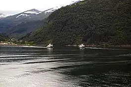 ![]() View of the ferries meeting on the Norddalsfjorden between Eidsdal and Linge | |