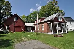 The Norridgewock Female Academy is set in the village of Norridgewock, adjacent to the later Eaton School building on the north side of Mercer Road, just west of its junction with Upper Main Street. It is a 1+1⁄2-story brick structure with a front-facing gable and a modest Greek temple front with four Tuscan columns and fully enclosed wood frame pediment. The tympanum of the pediment is finished in flushboard, and has two sash windows at its center. Below the portico, the facade is three bays wide, with a simple entry flanked by sash windows. At the rear of this block a single-story wood-frame ell extends to the left, joining it to a wood-frame carriage house.[2]