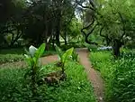 Even though the North-West University Botanical Garden spans less than three hectares more than a 1500 plant species is found here.[1] Most plants in the Botanical Garden are indigenous to South Africa with the exception of a few exotic plants which are kept for research or educational value. A large section of the garden, around a man-made ridge, is managed as a natural wooded grassland area. A variety of theme gardens make up the rest of the Botanical Garden, including the swamp garden, vlei garden, contemporary indigenous garden, vegetable and herb garden, invader display, plant evolution garden and succulent rockery.[1] Some more common plant genera represented in the garden include Acacia, Aloe, Bonatea, Crinum, Dierama, Encephalartos, Eucomis, Eulophia, Euphorbia, Gasteria, Gladiolus, Haworthia, Hypoxis, Indigofera, Kniphofia, Plectranthus, Podocarpus, Polygala, Scadoxus, Searsia, Stapelia and Zantedeschia.