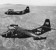 The AJ-2P was flown by Photographic Squadron 61 (VJ-61) and Photographic Squadron 62 (VJ-62), both of which were redesignated as Heavy Photographic Squadrons, VAP-61 and VAP-62, respectively, on 2 July 1956. VJ-61 was assigned to the Pacific Fleet and VJ-62 to the Atlantic Fleet. The squadrons never deployed as complete units, but rather deployed as one to three aircraft detachments. Detachment Queen was formed by VJ-61 during the Korean War at Naval Station Sangley Point, in the Philippines, to fly reconnaissance missions over the People's Republic of China and North Korea. The detachment continued its missions after the war until at least June 1954. Both squadrons frequently provided photographic mapping for agencies outside the Navy like the Army Map Service, Army Corps of Engineers, U.S. Coast and Geodetic Survey, and U.S. Departments of the Interior and Agriculture. The AJ-2s in these squadrons were replaced by Douglas A3D-2P Skywarriors beginning in 1959,[24] although the last month that they were reported in squadron service was January 1960.[25] Surviving AJ-1 and AJ-2 aircraft became A-2As and A-2Bs, respectively, when the Department of Defense redesignated all U.S. military aircraft in a common series in 1962.[26]