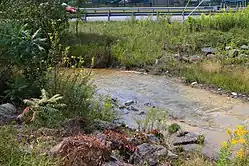 A prestressed box beam or girders bridge carrying Pennsylvania Route 61 over North Branch Shamokin Creek in 2008 in Atlas. It is 53.2 feet (16.2 m) long.[16] This bridge has been slated for preservation as part of the state of Pennsylvania's "Decade of Investment".[17] A project to remove waste rock piles in the watershed of the creek was carried out in 2006 and 2007. The goal of the project was to improve the water quality of several Operation Scarlift discharges in the watershed, thus reducing mine pollution to the creek.[18] In the early 1900s, the old channel of the creek was occupied by rocks and culm banks.[15]