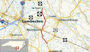 North Carolina Highway 131 (NC 131) is a primary state highway in the U.S. state of North Carolina. It connects the city of Bladenboro to Fayetteville, via NC 87, and Whiteville, via US 701.