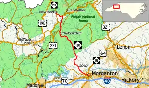 | | 26.5 | 42.6 | To Linville Gorge Wilderness | ||