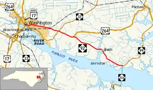 North Carolina Highway 92 (NC 92) is a primary state highway in the U.S. state of North Carolina. It runs through connecting Washington and Bath, entirely in Beaufort County