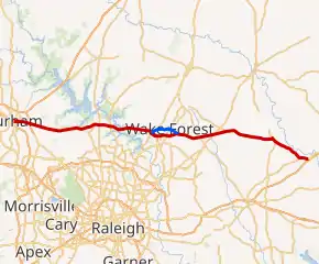 The entire route is in Wake Forest, Wake County.