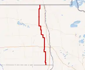 North Dakota Highway 18 is a major north–south highway in eastern North Dakota. It runs from Highway 30 at the Canadian border south of Gretna, Manitoba to South Dakota Highway 25 north of Claire City.[2]