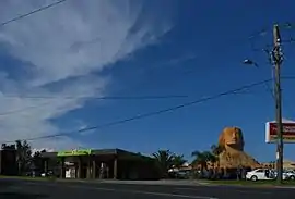 In 1998 hotel owner Paul Ramia erected a 15m-high polystyrene replica of the Great Sphinx of Giza atop his hotel, known as the Sphinx Hotel.[3]