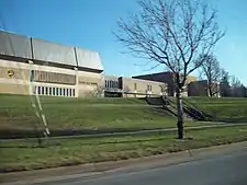 Completion of the building was delayed 24 years because of the depression and two wars. In 1955 an auditorium, cafeteria and gymnasium were added, followed by a vocational wing in 1970. The school expanded to serve grades 9–12 in September 1972.